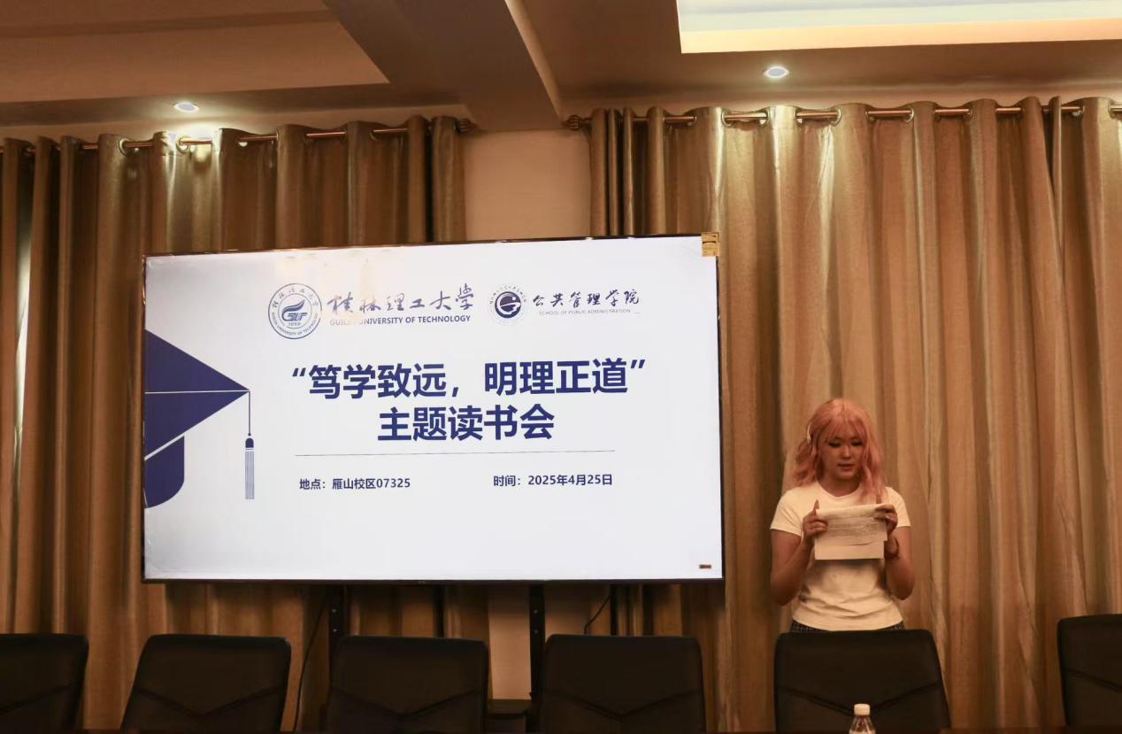 2025年4月25日14:30,我院在雁山校区07325会议室举办第五次“笃学致远,明理正道”主题读书会。读书会由学院学工组长马树振老师指导,2023级研究生宋立一、孙成、杜玉欣宣讲,2023级、2024级全体研究生参加。
