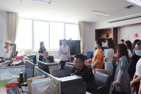 9月10日下午,我院传播学专业老师及传播学专业2019级同学一行来到了雁山区人民政府,实地参观走访公共管理与传媒学院教学实习实践基地雁山区政府融媒体中心。