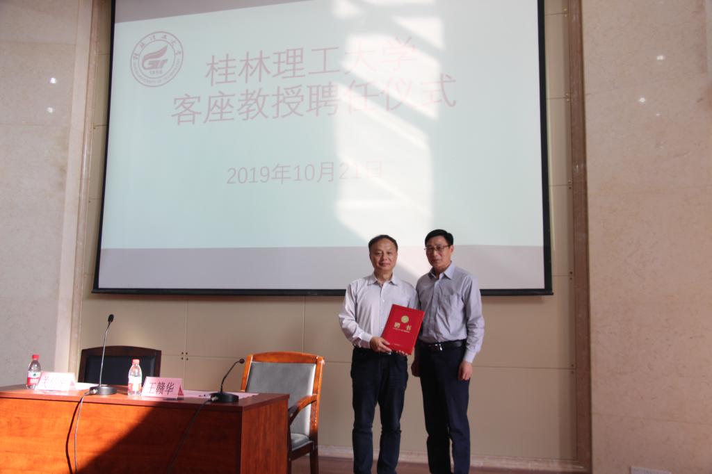 聘任仪式中,学校党委副书记王赣华教授代表学校党委、行政向关信平教授授予聘书并致辞,王赣华副书记代表学校党委、行政、李国忠书记、解庆林校长对关教授到访桂工表示热烈欢迎,对关信评教授同意学校客座教授聘任邀请,为我校社会工作专业学科建设与人才培养出谋划策表示衷心感谢。