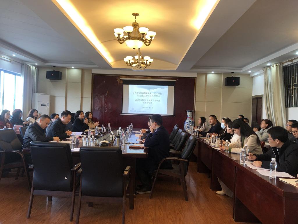 为进一步促进学术交流和学科交叉融合,拓展学术研究领域,我院联合艺术学院、马院12月14日下午2:30在雁山校区07325举办2022年国家社科基金申报项目选题年会。我院彭正波院长,艺术学院白凌婷书记、李本建院长,马院梁英院长以及各学院副院长、选题指导专家和今年欲申报国社的老师都参加了此次会议,会议由我院分管科研的副院长何德珍教授主持。