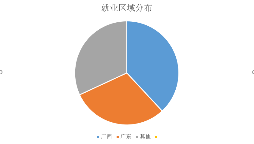 1、从毕业生就业区域选择来看,我院毕业生已就业人数189人,两广是主要就业区域,学生选择其他地区进行就业的比例有所增高,我院学生就业选择更加多元化。