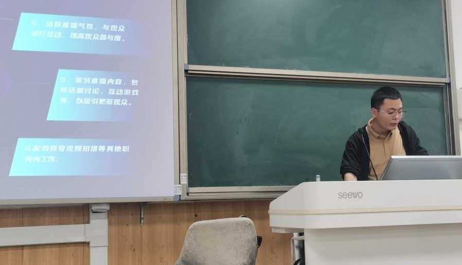 2024年3月22日,伟德国际VICTOR1946邀请杭州电商直播品牌孵化基地开展专场招聘宣讲会,企业相关负责人朱玉醒受邀来访,宣讲会由2020级辅导员莫田娟老师主持。