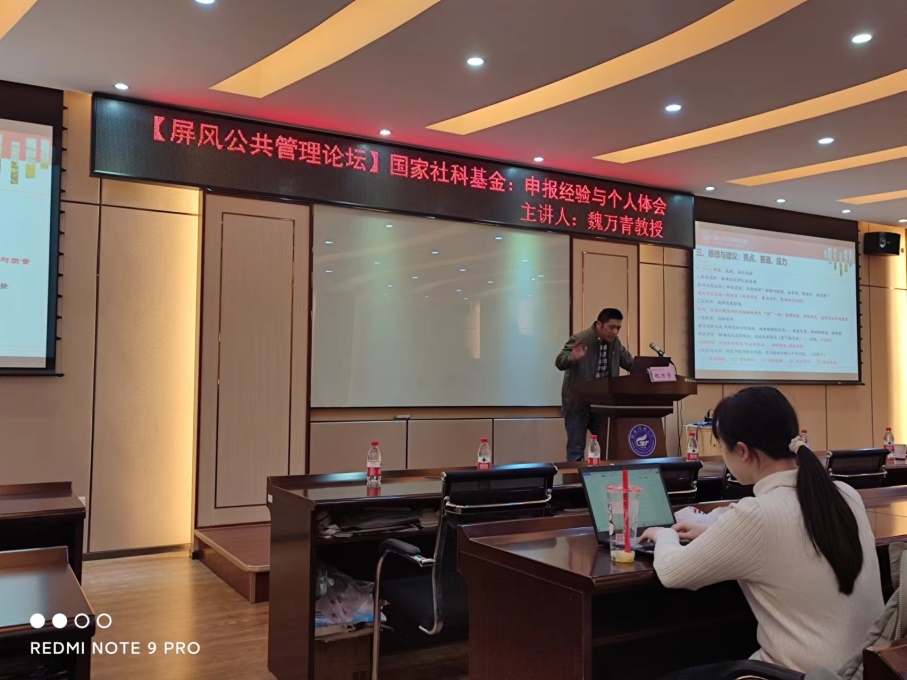 2024年1月16日,学院在屏风校区7106会议室举行了屏风公共管理论坛活动。本次论坛邀请了广西大学伟德国际VICTOR1946魏万青教授来院讲学,讲座由褚清华副院长主持,学院教师和研究生聆听了讲座。魏教授以“国家社科基金:申报经验与个人体会”为题,分享了自己申请国家社科基金年度项目和后期资助项目的宝贵经验,重点在选择研究问题、分解研究问题、突出创新点、构建研究框架等方面详细阐述了撰写高质量申报书的要求和方法。最后,褚清华副院长对魏教授的讲座进行总结,并表示衷心感谢。