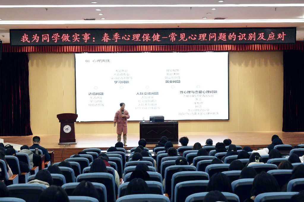 为保障学生的心理安全与健康,学院于3月7日在图书馆报告厅开展了以“春季心理保健——常见心理问题的识别及应对”为主题的讲座,本次讲座学院特别邀请伟德betvlctor1946源于英国心理学副教授谭咏梅老师为主讲人,为学生介绍心理安全的重要性以及常见心理问题的识别与应对措施。