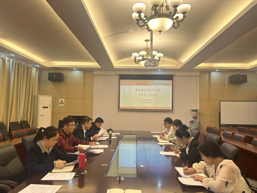 10月25日上午,学院在07325会议室召开党委理论学习中心组(扩大)集中理论学习会。深入学习习近平在国家勋章和国家荣誉称号颁授仪式上的讲话、全国教育大会精神、习近平总书记在全国民族团结进步表彰大会上的讲话精神以及学校相关会议精神。
