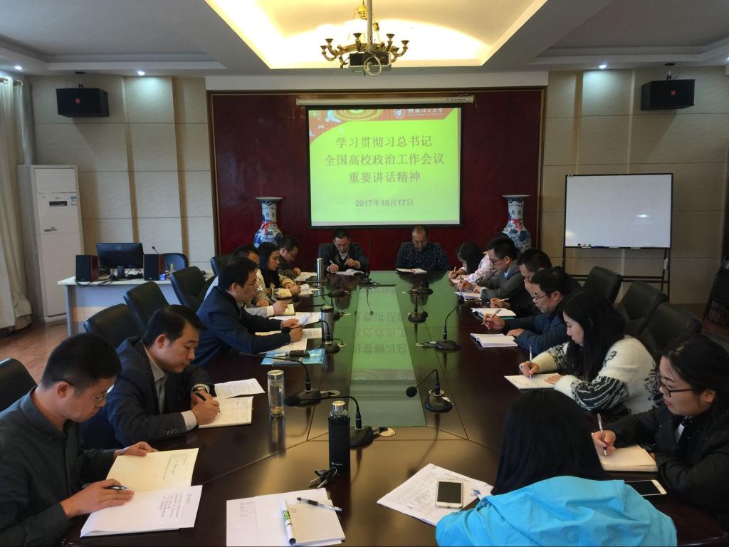 2017年10月17日下午,学院在雁山07325召开学习贯彻习近平总书记“全国高校思想政治工作会议”精神的会议,会议由学院党委书记金飞主持,学院领导班子和各教研室主任、副主任以及各科室主任参加了会议。