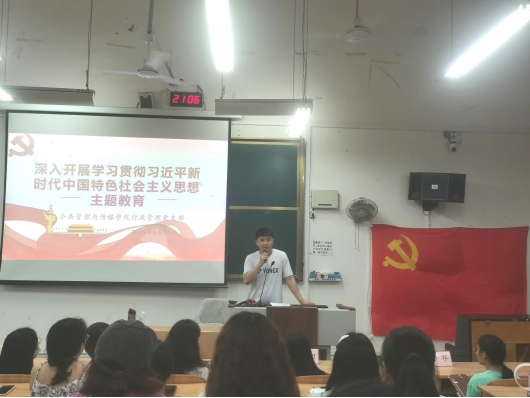 为深入开展学习贯彻习近平新时代中国特色社会主义思想主题教育,积极响应榜样引领精神的号召,5月21日,公共管理与传媒学院行政管理党支部在雁山校区07520教室开展主题党日活动。活动由行政管理党支部书记马树振同志主持,支部全体党员参与。