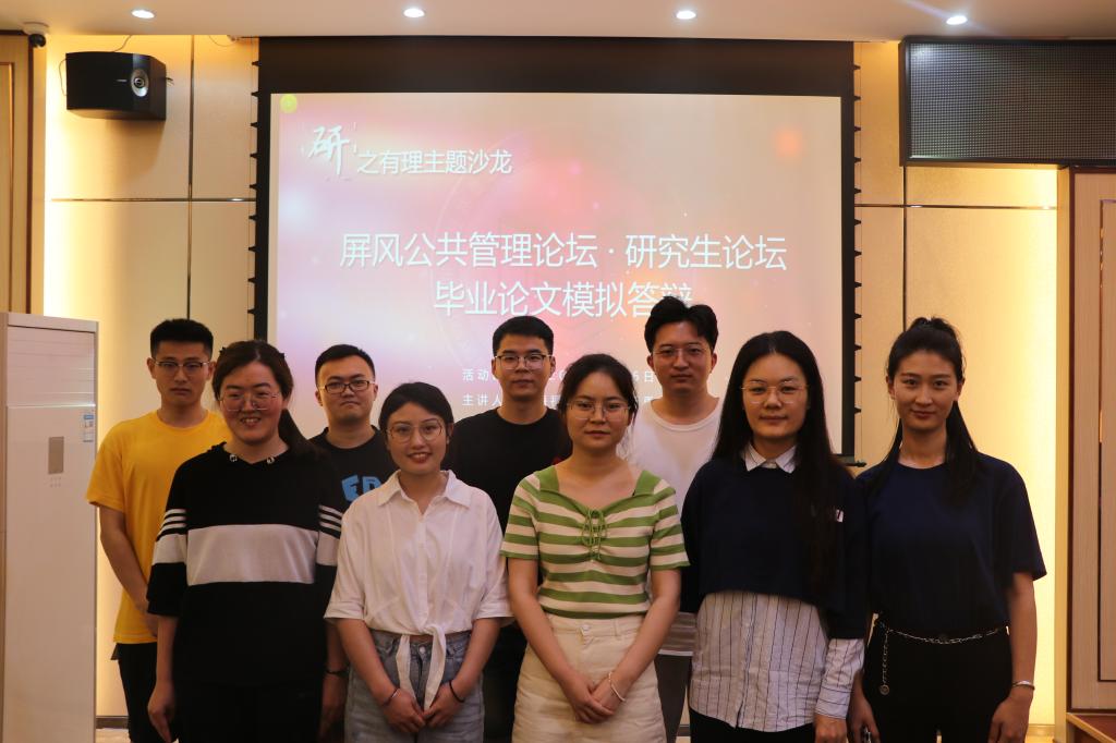 为营造和保持良好的学术氛围,帮助毕业班同学提前进入毕业答辩状态,2022年5月6日下午,由伟德betvlctor1946源于英国研究生会、伟德betvlctor1946源于英国创新创业活动中心主办,公共管理与传媒学院承办的“研之有理”屏风公共管理论坛之毕业论文模拟答辩在屏风校区7106报告厅举行,本次活动主要由杨海禄、杨愫和姜天禹三位2019级学硕研究生作为主讲,学院朱光喜副院长、校研会与兄弟院研会嘉宾以及学院全体研究生参加了本次活动。