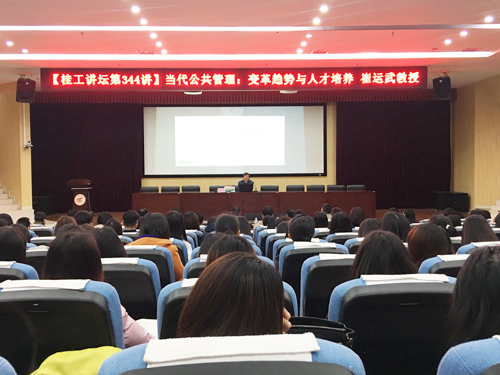 3月23日上午,应学院邀请,云南大学伟德国际VICTOR1946院长、社会工作学院院长、行政管理专业博士生导师、国家级教学名师崔运武教授到雁山校区图书馆报告厅作“当代公共管理:变革趋势与人才培养”的报告。学校副厅级调研员张劲松主持报告会,学院师生200多人聆听了报告。