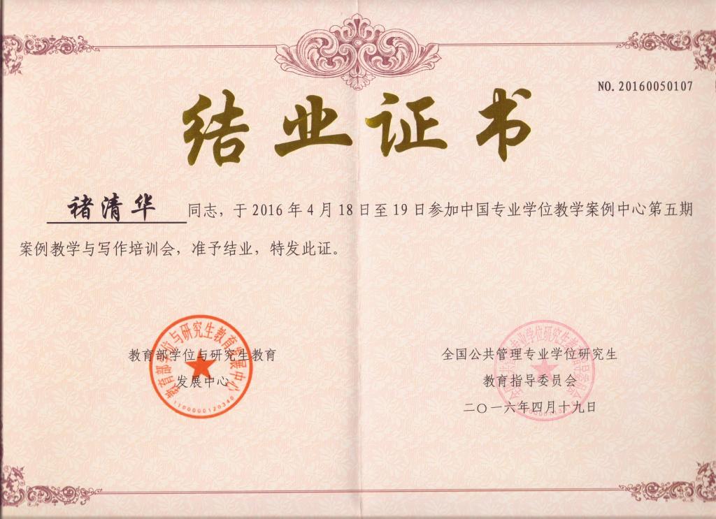 2016年4月18日-19日,行政管理教研室褚清华老师在福州参加了第五届MPA案例教学与写作培训会。