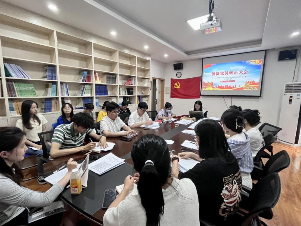 6月12日,学院研究生党支部于7705会议室召开预备党员转正会议,讨论关于董明明、关莹、陈淑萌、张梦云以及吴宇飞5位同志申请转为正式党员的问题。参加本次大会的有支部书记王静、副书记申慧月等16名支部成员,会议由副书记申慧月进行主持。