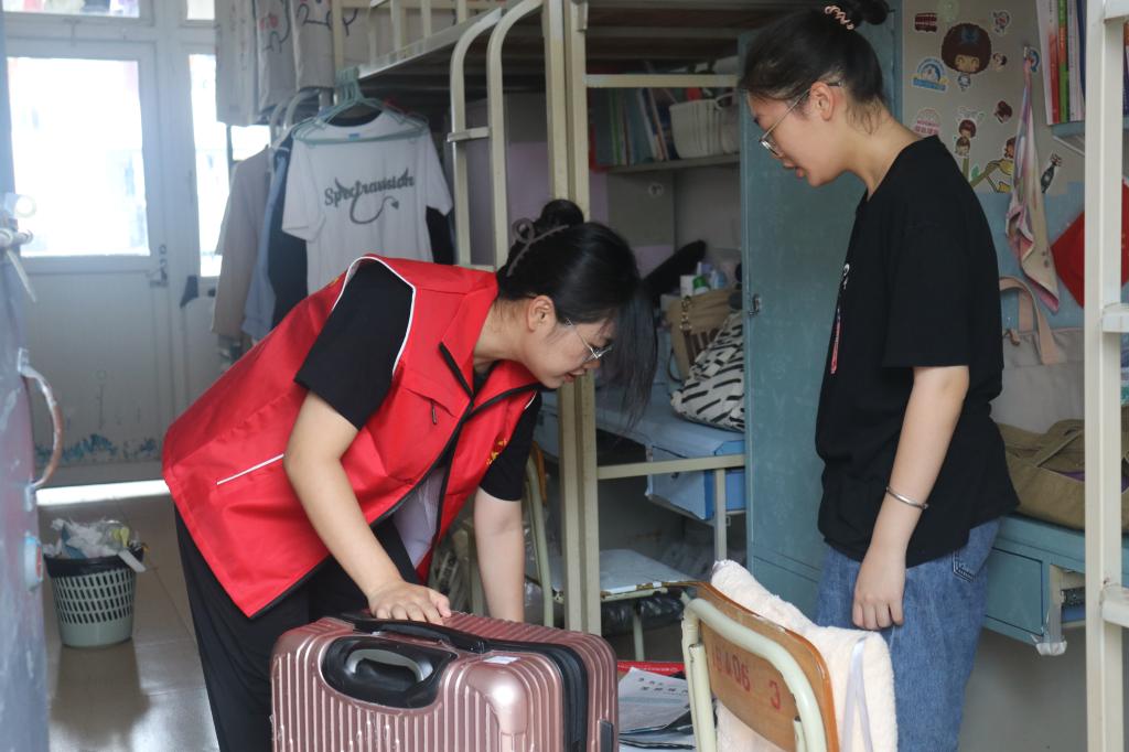 2023年7月1日上午,公共管理与传媒学院新闻传播类专业22级学生按专业分流情况进行宿舍调整。为确保宿舍调整工作的顺利进行,我院共计53名党员志愿者走在宿舍调整工作第一线,发挥党员先锋模范作用,为调整宿舍的同学提供最贴心最便利的服务。