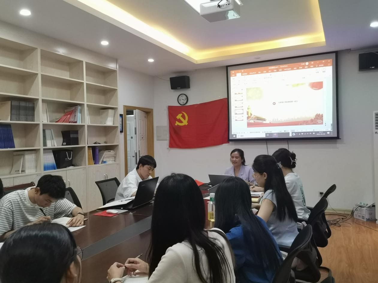 2023年6月29日下午,学院研究生党支部在屏风校区7705会议室集中学习了习近平总书记关于完整准确全面贯彻新发展理念的重要论述。学习会由支部书记王静同志主持。